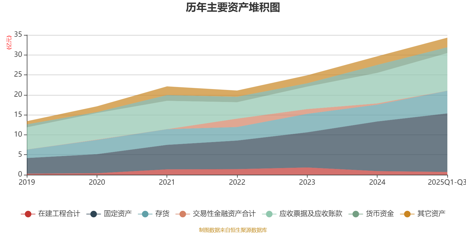 资产重大变化方面,截至2025年三季度末,公司货币资金较上年末减少26.9%,占公司总资产比重下降2.47个百分点;存货较上年末增加34.58%,占公司总资产比重上升2.31个百分点;应收票据及应收账款较上年末增加23.29%,占公司总资产比重上升1.68个百分点;在建工程合计较上年末减少23.51%,占公司总资产比重下降1.04个百分点。