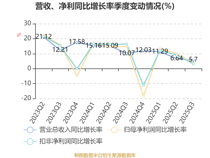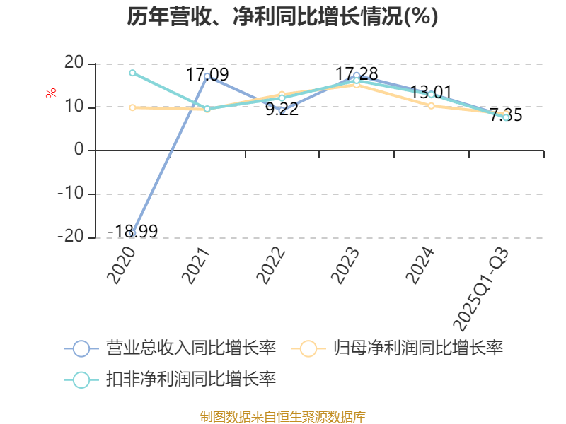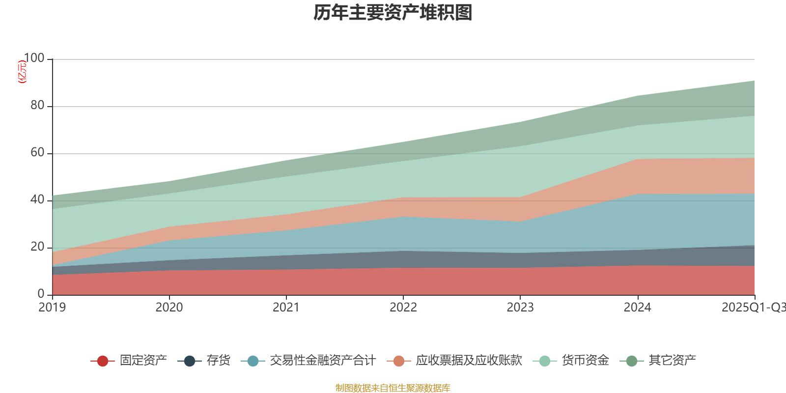资产重大变化方面,截至2025年三季度末,公司交易性金融资产合计较上年末减少8.01%,占公司总资产比重下降4.07个百分点;货币资金较上年末增加25.91%,占公司总资产比重上升2.86个百分点;存货较上年末增加33.17%,占公司总资产比重上升1.86个百分点;应收款项融资较上年末增加1916.44%,占公司总资产比重上升1.3个百分点。