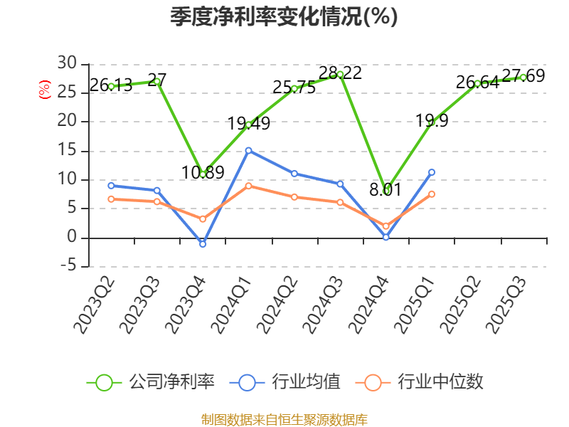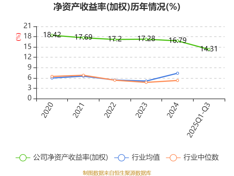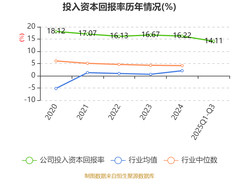 盈利能力方面, 2025年前三季度公司加权平均净资产收益率为14.31%,同比下降0.77个百分点。公司2025年前三季度投入资本回报率为14.11%,较上年同期下降0.52个百分点。