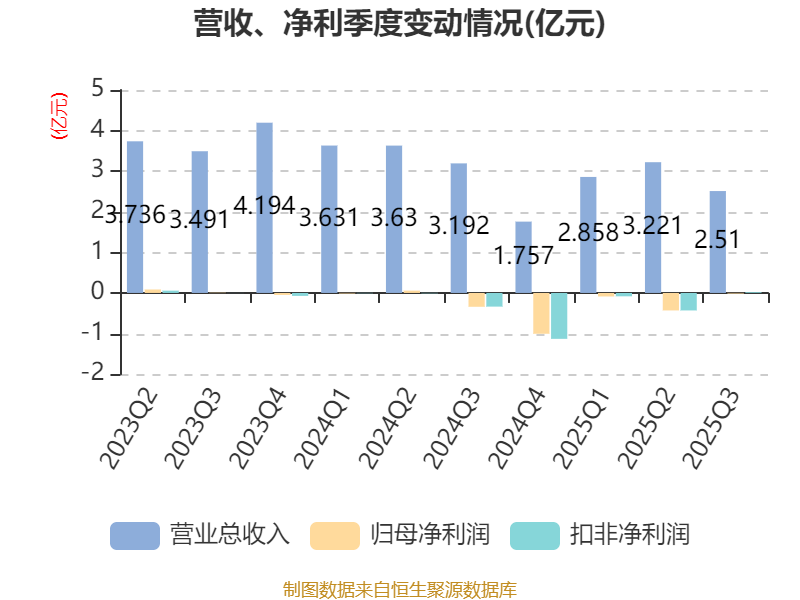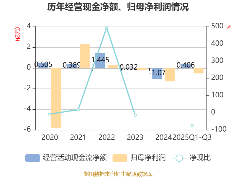 2025年前三季度,公司经营活动现金流净额为4055.62万元,同比增加1.7亿元;筹资活动现金流净额-94.2万元,同比减少1.07亿元;投资活动现金流净额-71.51万元,上年同期为-315.98万元。