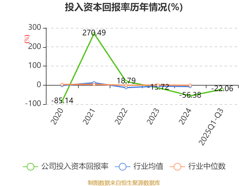 盈利能力方面, 2025年前三季度公司加权平均净资产收益率为-45.84%,同比下降34.01个百分点。公司2025年前三季度投入资本回报率为-22.06%,较上年同期下降12.12个百分点。