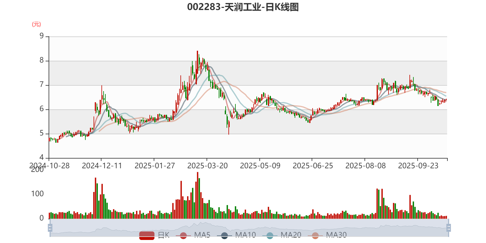 中证智能财讯天润工业(002283)10月27日披露2025年第三季度报告。前三季度公司实现营业总收入29亿元,同比增长4.85%;归母净利润2.80亿元,同比增长4.22%;扣非净利润2.63亿元,同比增长3.42%;经营活动产生的现金流量净额为5.83亿元,同比增长13.42%;报告期内,天润工业基本每股收益为0.25元,加权平均净资产收益率为4.66%。