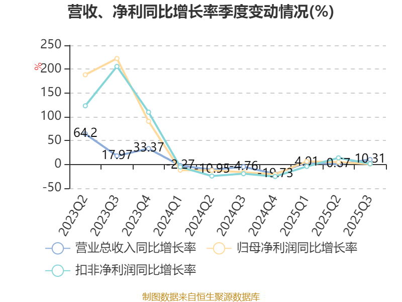 负债重大变化方面,截至2025年三季度末,公司短期借款较上年末减少74.16%,占公司总资产比重下降3.76个百分点;应付票据及应付账款较上年末增加23.93%,占公司总资产比重上升3.65个百分点;其他应付款(含利息和股利)较上年末增加167.79%,占公司总资产比重上升0.81个百分点;长期递延收益较上年末增加36.37%,占公司总资产比重上升0.41个百分点。