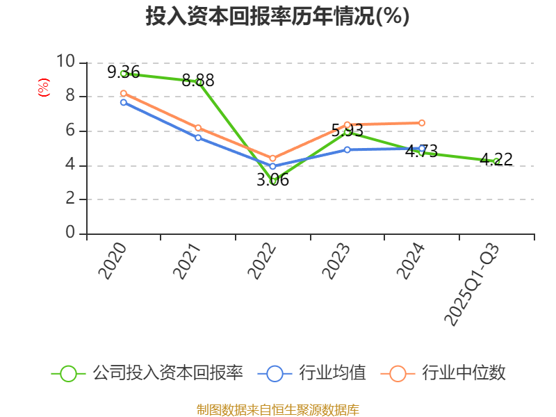 盈利能力方面, 2025年前三季度公司加权平均净资产收益率为4.66%,同比上升0.18个百分点。公司2025年前三季度投入资本回报率为4.22%,较上年同期上升0.49个百分点。