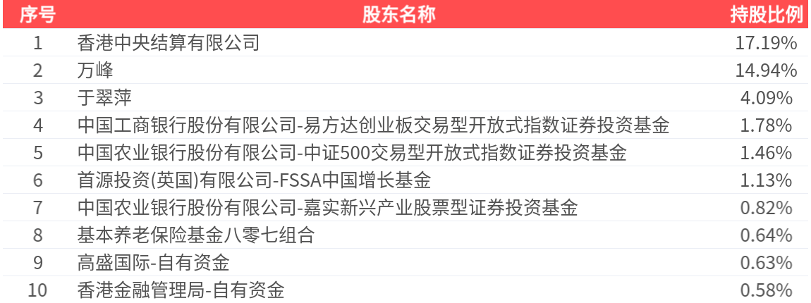 公司股东户数为7.66万户,前十大股东持股数量为7.28亿股,占总股本比例为43.24%,前十大股东持股情况如下: