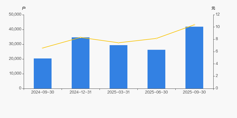 2024年9月30日至今,公司股东户数成倍增长,区间涨幅达105.77%。2024年9月30日至2025年9月30日区间股价上涨57.32%。