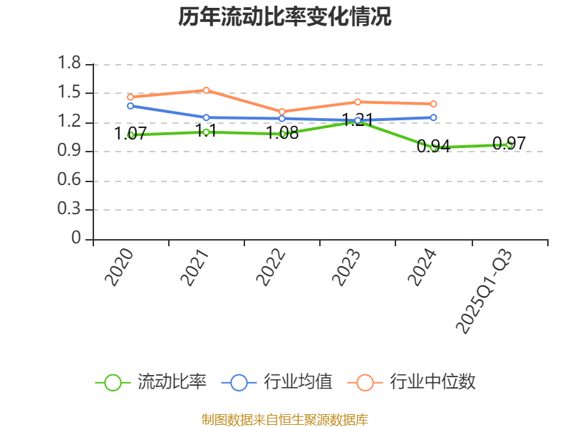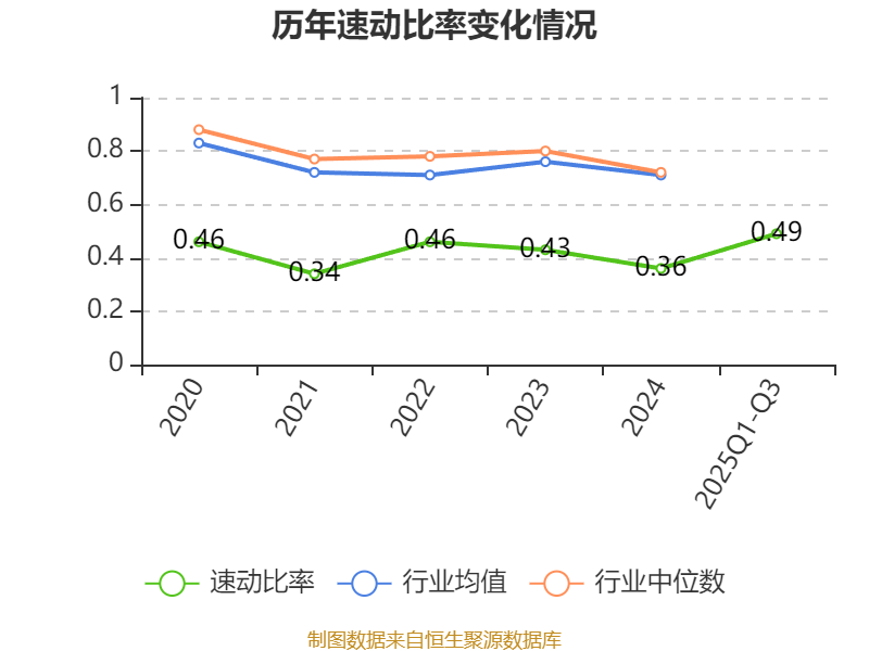 2025年前三季度,公司流动比率为0.97,速动比率为0.49。