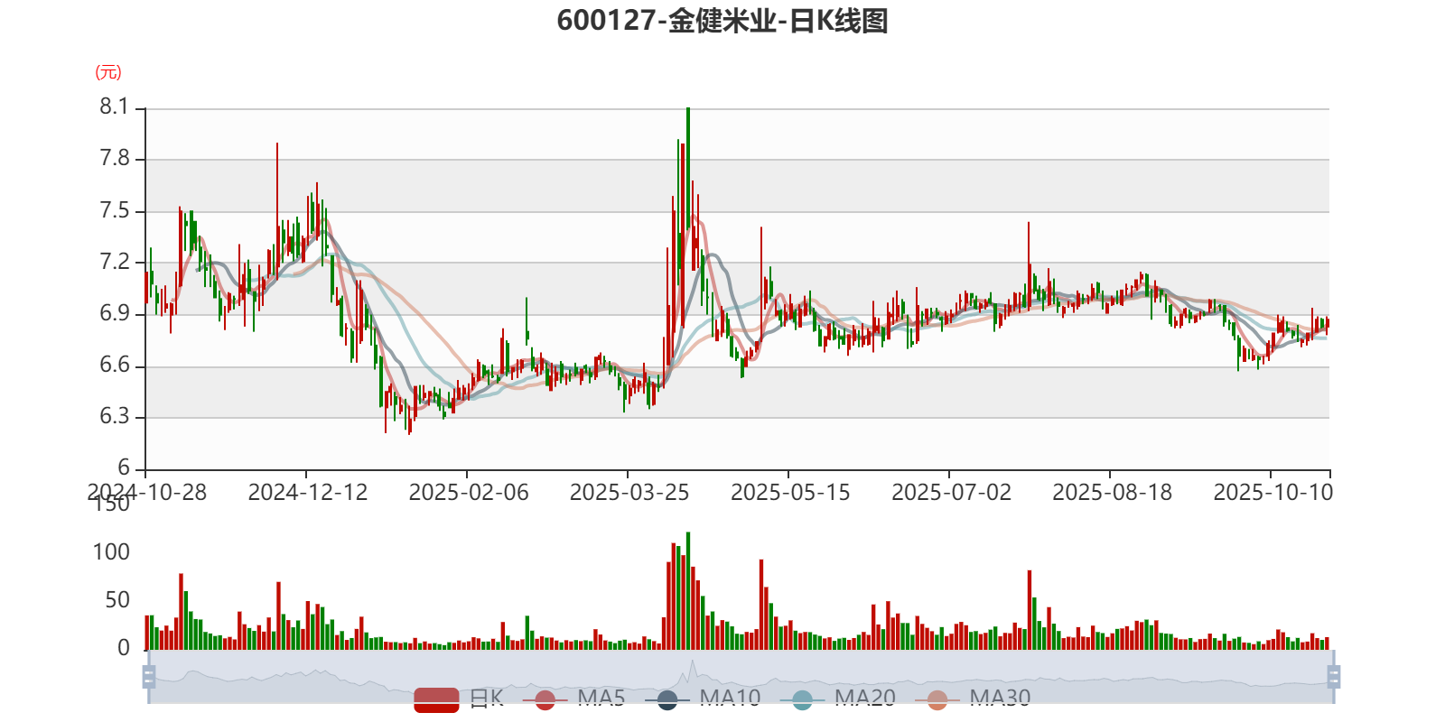 中证智能财讯金健米业(600127)10月28日披露2025年第三季度报告。前三季度公司实现营业总收入23.73亿元,同比下降26.82%;归母净利润1255.43万元,同比扭亏;扣非净利润585.01万元,同比扭亏;经营活动产生的现金流量净额为1.35亿元,上年同期为-3224.06万元;报告期内,金健米业基本每股收益为0.0196元,加权平均净资产收益率为1.86%。