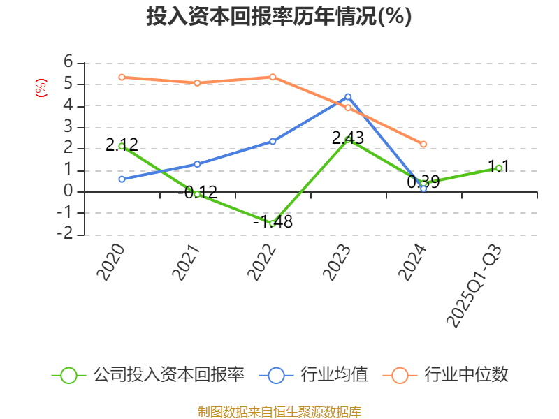 盈利能力方面, 2025年前三季度公司加权平均净资产收益率为1.86%,同比上升1.77个百分点。公司2025年前三季度投入资本回报率为1.1%,较上年同期上升0.91个百分点。