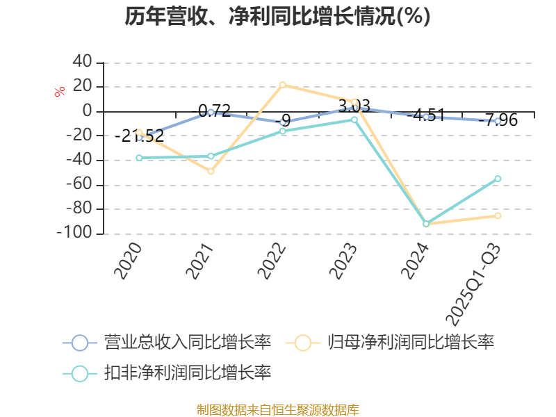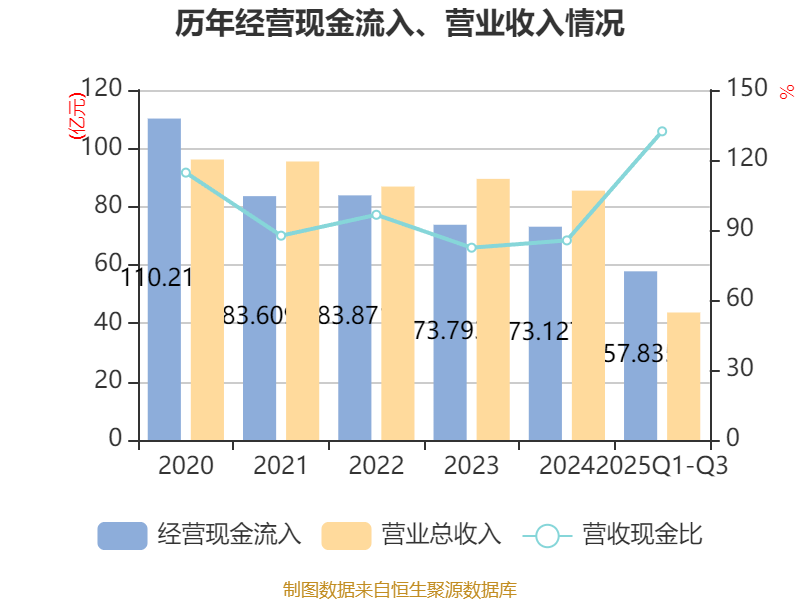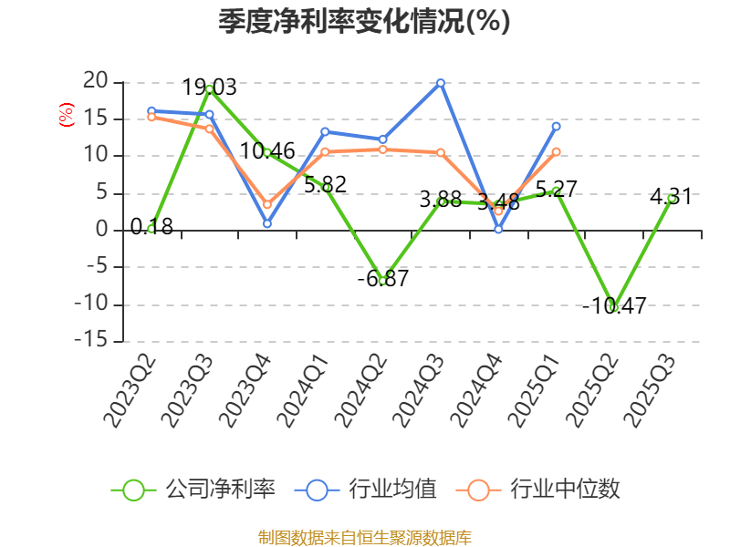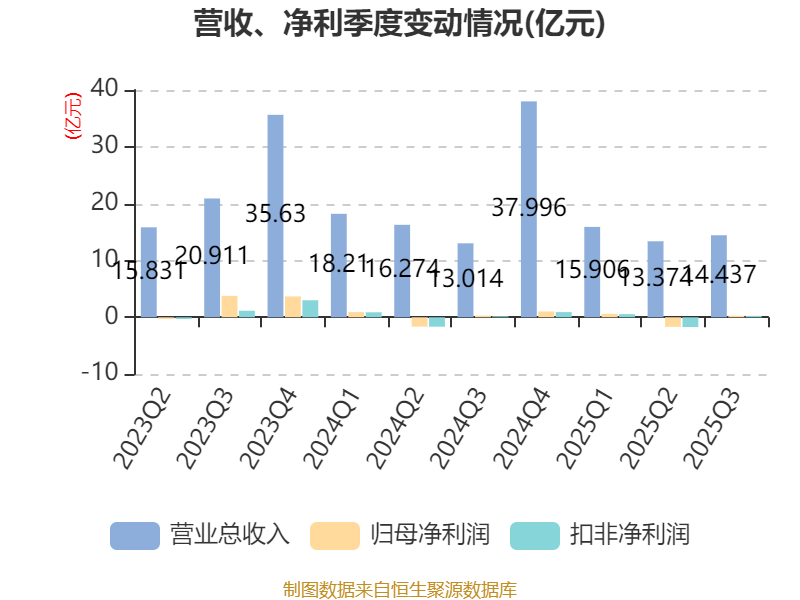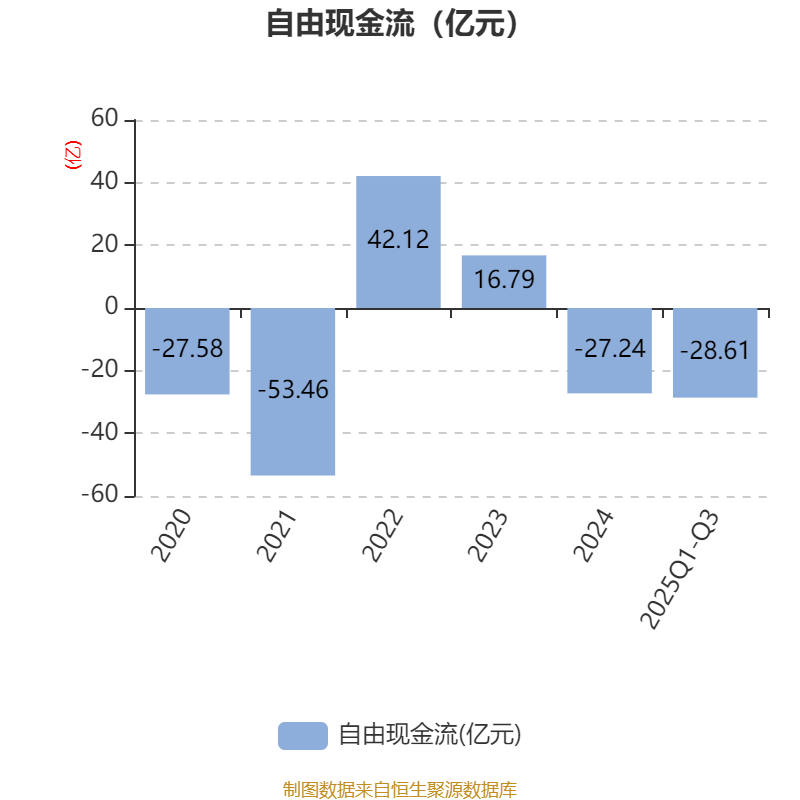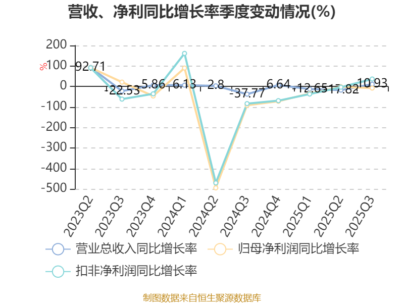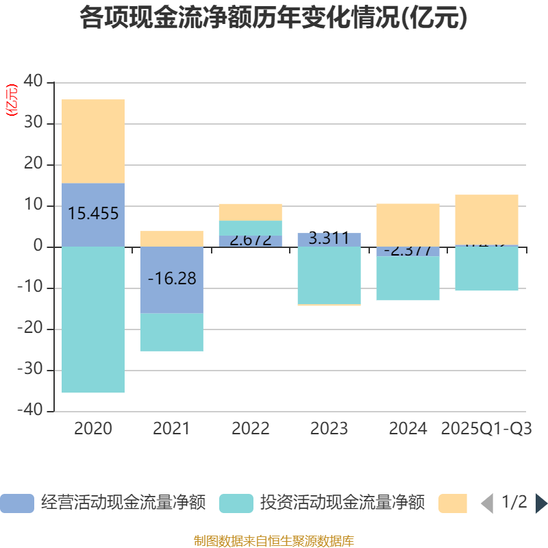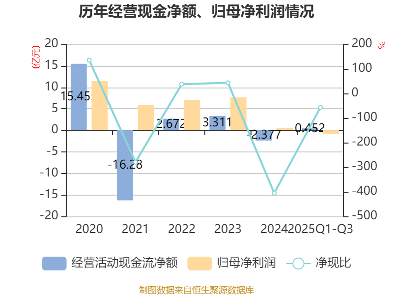 2025年前三季度,公司经营活动现金流净额为4517.97万元,同比增加8.48亿元;筹资活动现金流净额12.19亿元,同比减少2.98亿元;投资活动现金流净额-10.69亿元,上年同期为-8.45亿元。