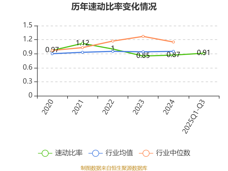 2025年前三季度,公司流动比率为0.92,速动比率为0.91。