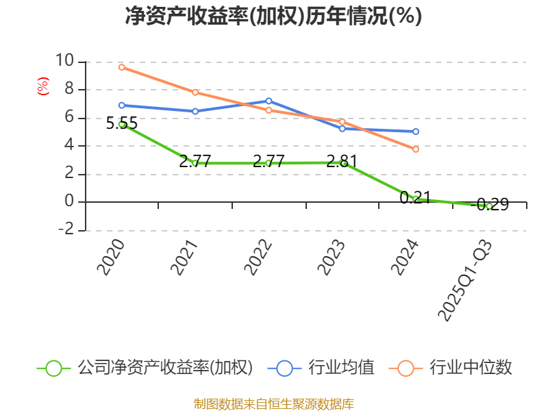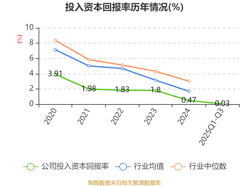 盈利能力方面, 2025年前三季度公司加权平均净资产收益率为-0.29%,同比下降0.13个百分点。公司2025年前三季度投入资本回报率为0.03%,较上年同期下降0.13个百分点。