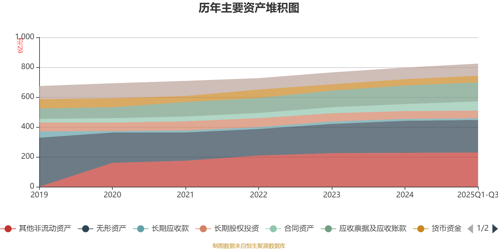 负债重大变化方面,截至2025年三季度末,公司应付债券较上年末增加32.11%,占公司总资产比重上升0.53个百分点;合同负债较上年末增加45.48%,占公司总资产比重上升0.41个百分点;应付票据及应付账款较上年末增加1.52%,占公司总资产比重下降0.31个百分点;长期应付款合计较上年末增加18%,占公司总资产比重上升0.3个百分点。