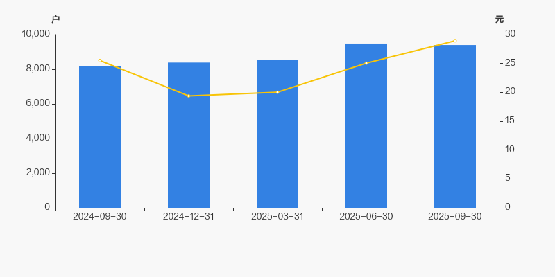 2024年9月30日至今,公司股东户数显著增长,区间涨幅为14.77%。2024年9月30日至2025年9月30日区间股价上涨13.41%。