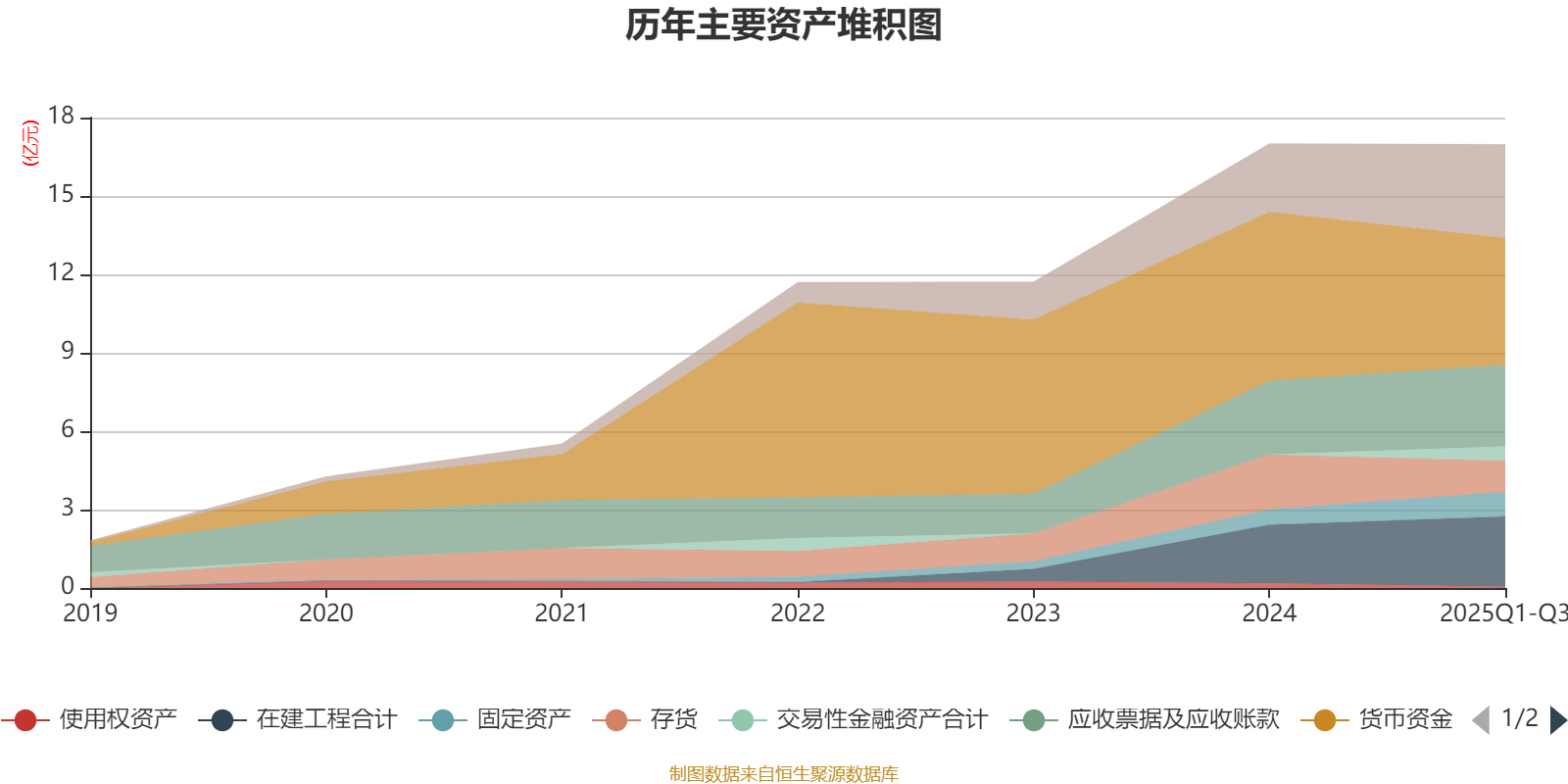 资产重大变化方面,截至2025年三季度末,公司货币资金较上年末减少24.95%,占公司总资产比重下降9.43个百分点;存货较上年末减少43.84%,占公司总资产比重下降5.41个百分点;预付款项较上年末增加676.77%,占公司总资产比重上升3.44个百分点;交易性金融资产合计占公司总资产的3.24%,上年末为0。
