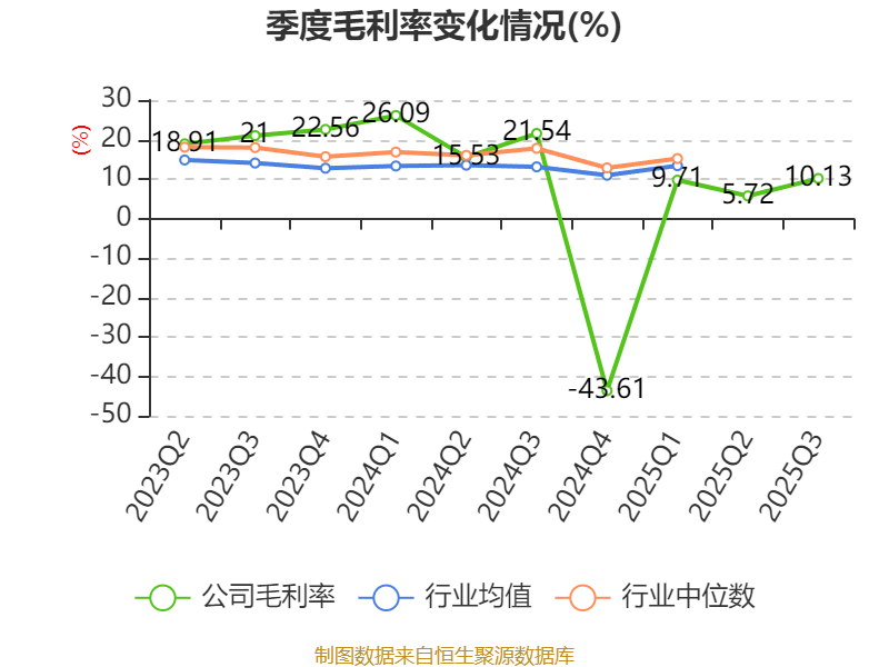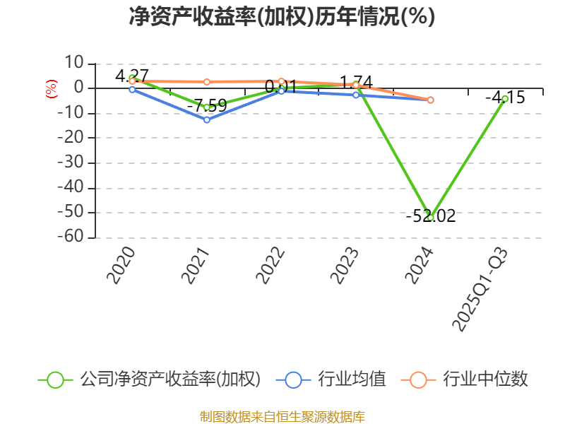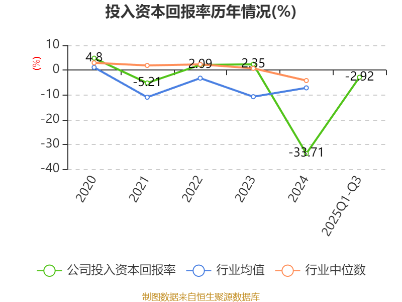 盈利能力方面, 2025年前三季度公司加权平均净资产收益率为-4.15%,同比下降2.05个百分点。公司2025年前三季度投入资本回报率为-2.92%,较上年同期下降2.06个百分点。