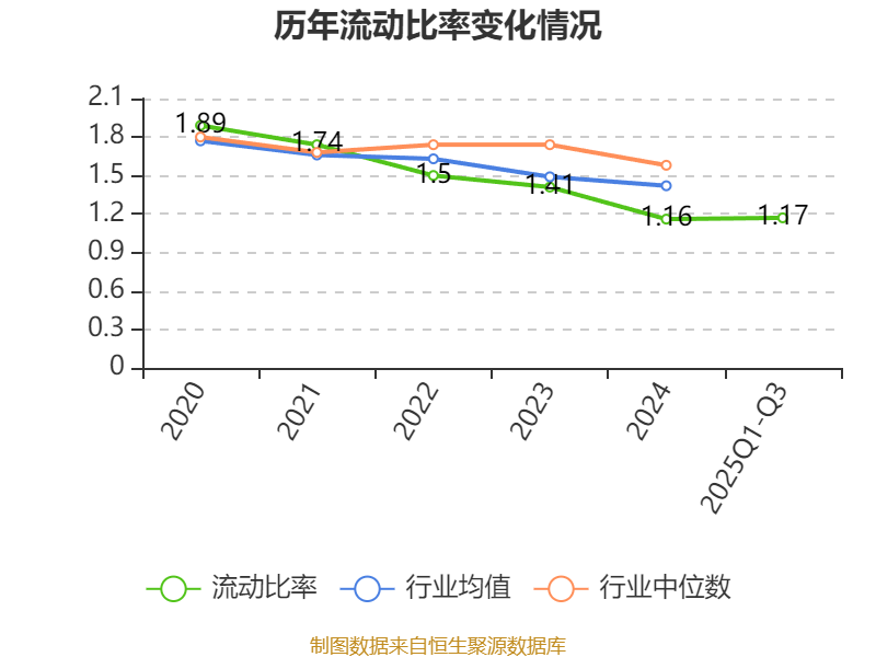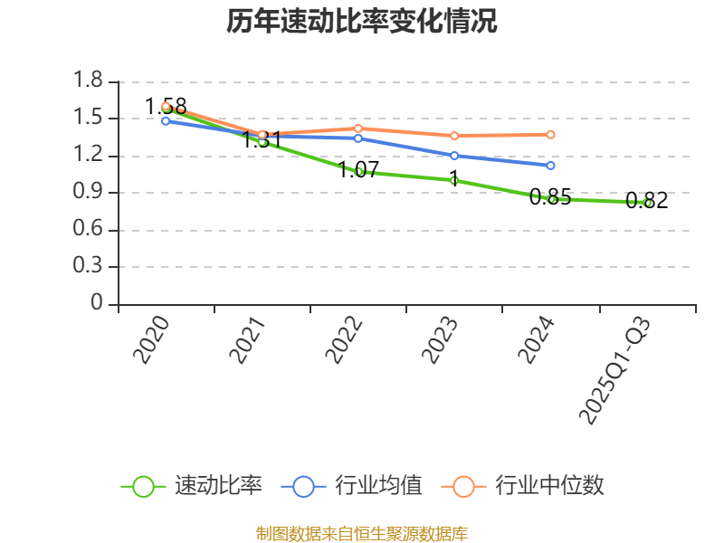 2025年前三季度,公司流动比率为1.17,速动比率为0.82。
