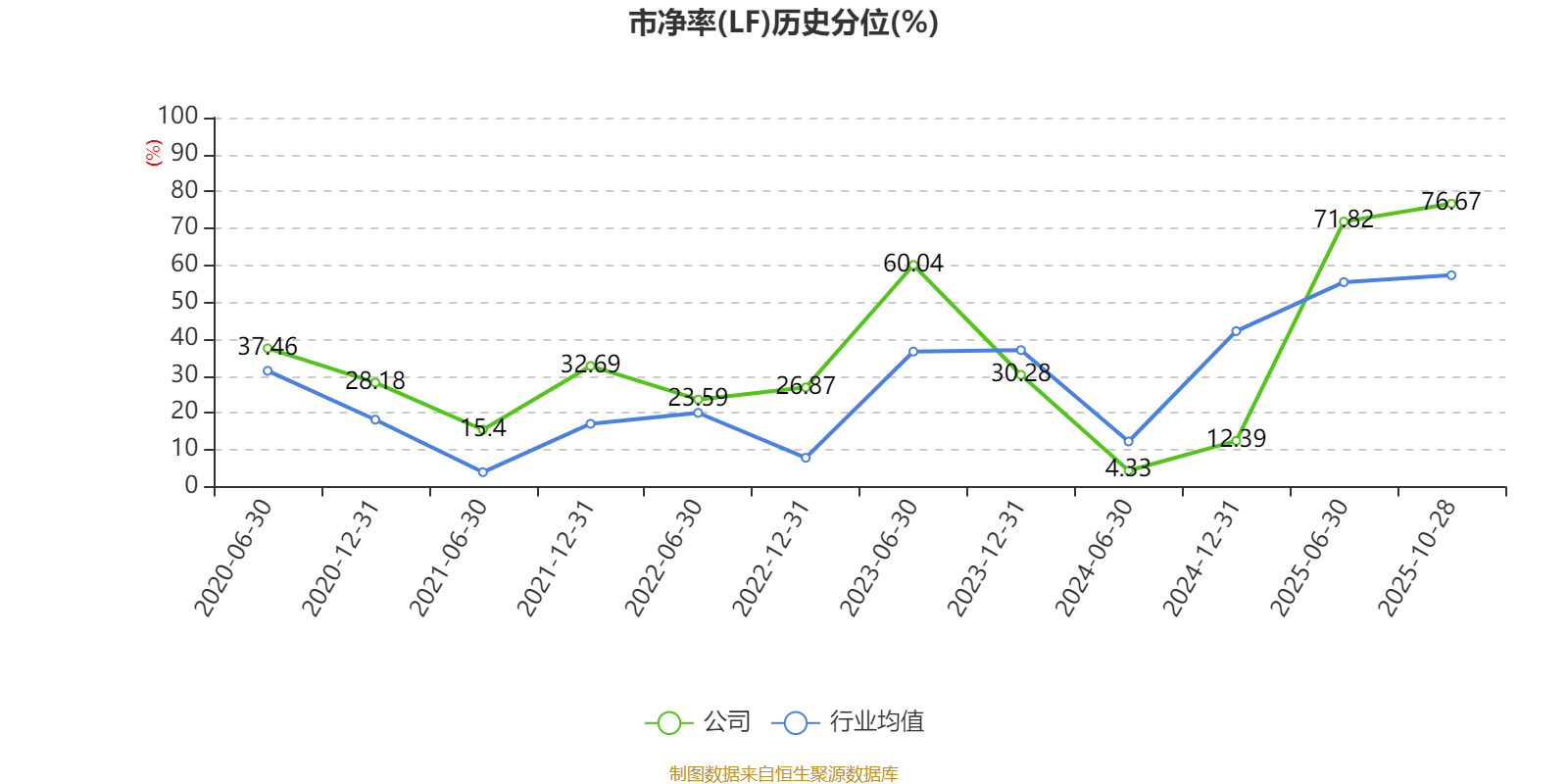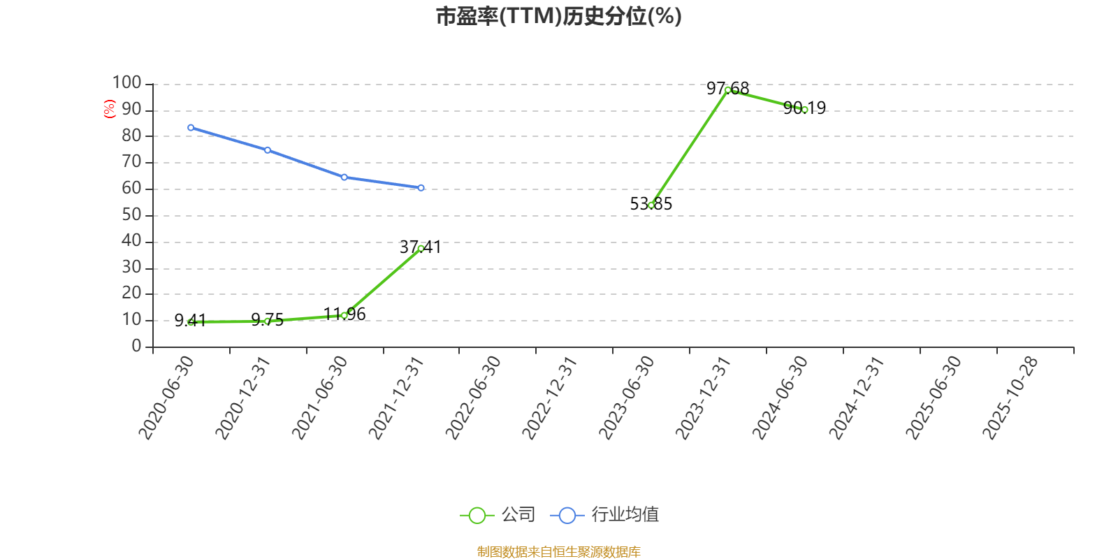 市盈率、市净率为负时,不显示当期分位数,会导致折线图中断。
