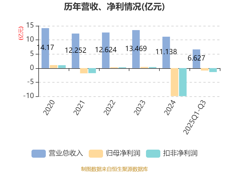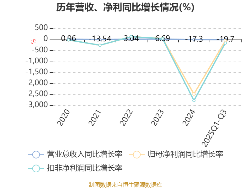 中证智能财讯恒实科技(300513)10月29日披露2025年第三季度报告。前三季度公司实现营业总收入6.63亿元,同比下降19.70%;归母净利润亏损8606.02万元,上年同期亏损5001.67万元;扣非净利润亏损1.4亿元,上年同期亏损5057.68万元;经营活动产生的现金流量净额为15.41万元,上年同期为-2.26亿元;报告期内,恒实科技基本每股收益为-0.2743元,加权平均净资产收益率为-4.15%。