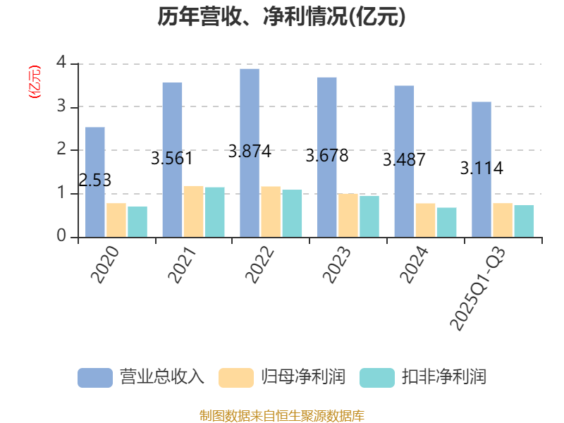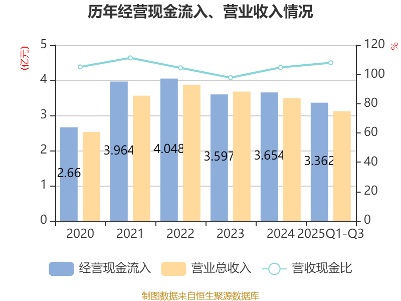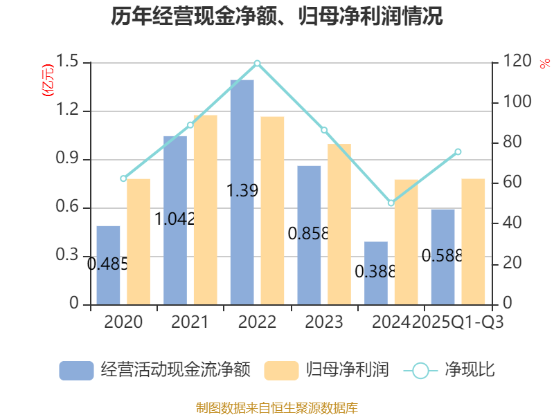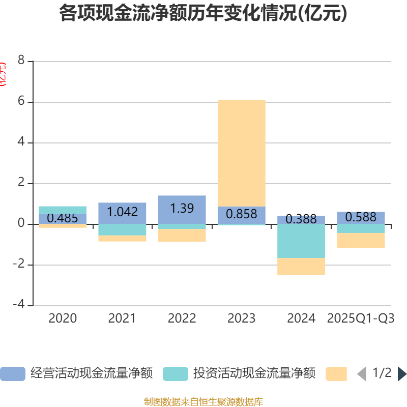 2025年前三季度,公司经营活动现金流净额为5884.25万元,同比增长165.89%;筹资活动现金流净额-7245.85万元,同比减少10.45万元;投资活动现金流净额-4521.29万元,上年同期为-3719.46万元。