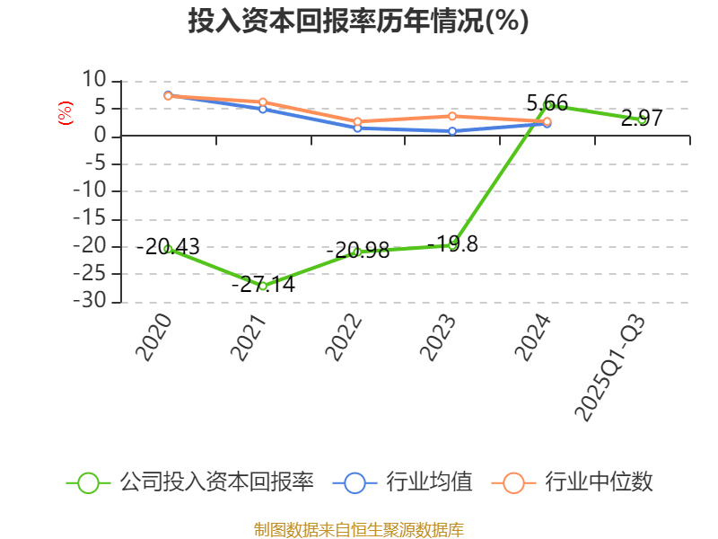 盈利能力方面, 2025年前三季度公司加权平均净资产收益率为1.61%,同比下降0.08个百分点。公司2025年前三季度投入资本回报率为2.97%,较上年同期下降1.01个百分点。