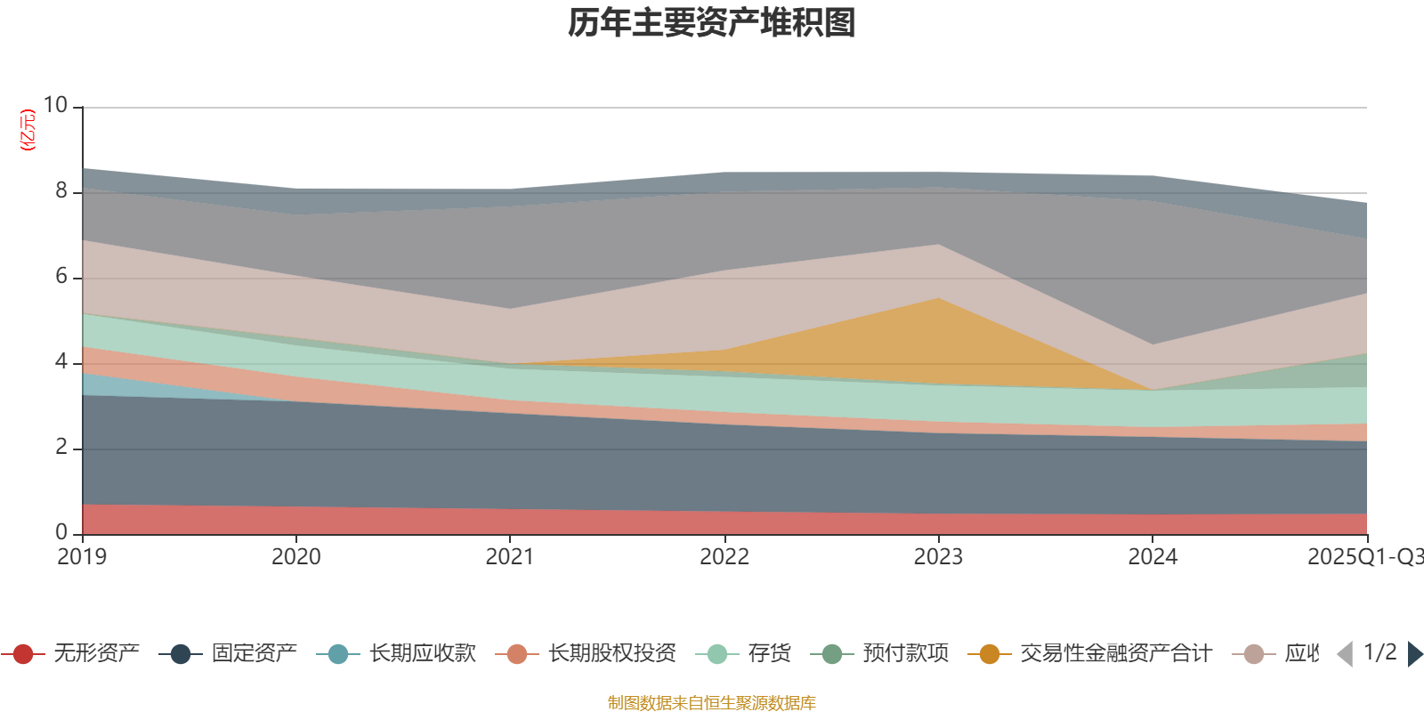 资产重大变化方面,截至2025年三季度末,公司货币资金较上年末减少61.95%,占公司总资产比重下降23.56个百分点;预付款项较上年末增加4723.06%,占公司总资产比重上升9.98个百分点;应收票据及应收账款较上年末增加32.34%,占公司总资产比重上升5.49个百分点;其他应收款(含利息和股利)较上年末增加1864.65%,占公司总资产比重上升2.81个百分点。