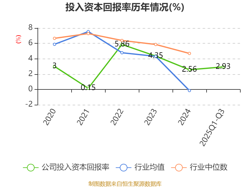 盈利能力方面, 2025年前三季度公司加权平均净资产收益率为2.97%,同比上升2.59个百分点。公司2025年前三季度投入资本回报率为2.93%,较上年同期上升2.64个百分点。