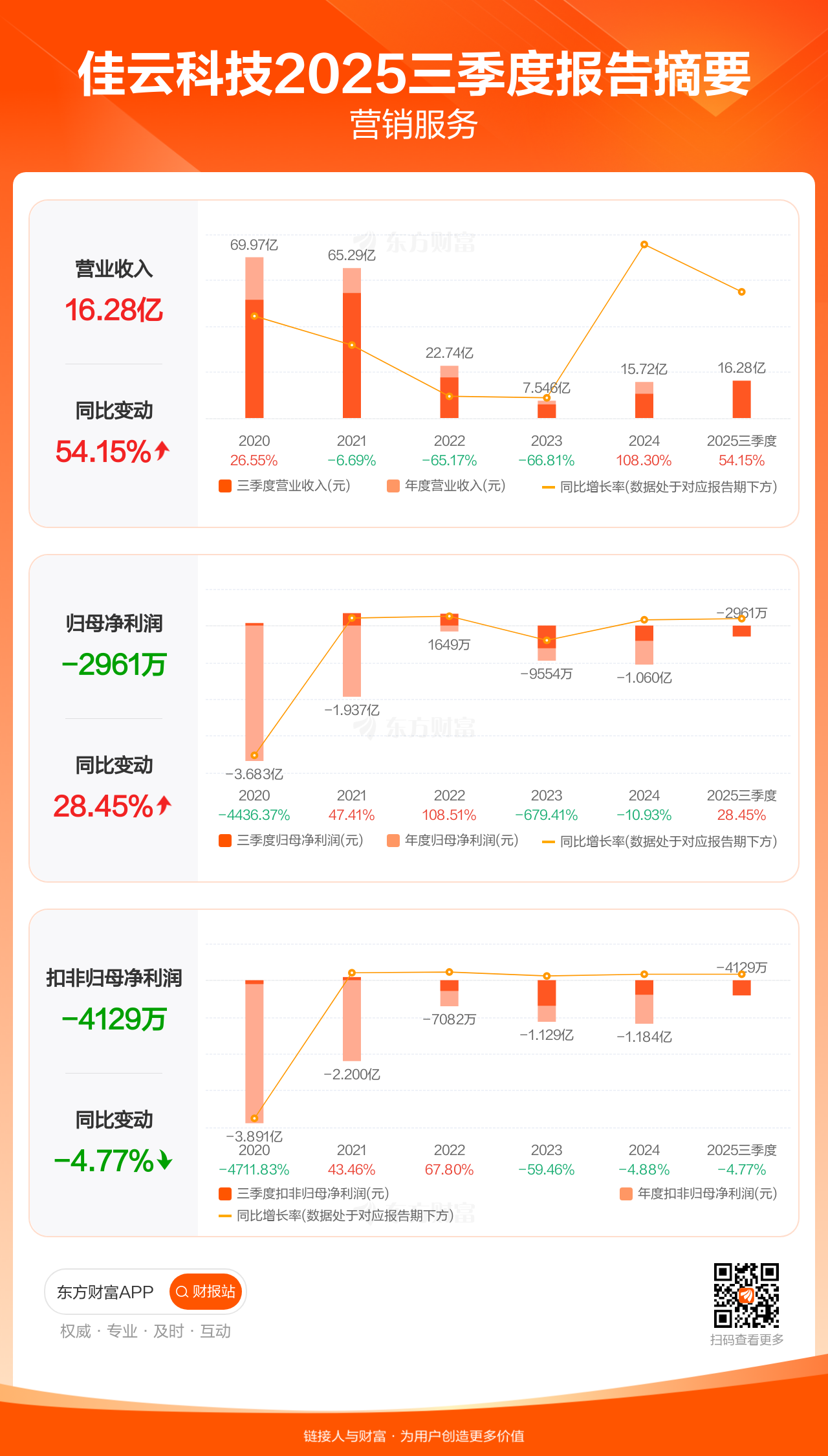 图解财报:佳云科技前三季归母净利润-2960.69万元,上年同期-4137.86万元