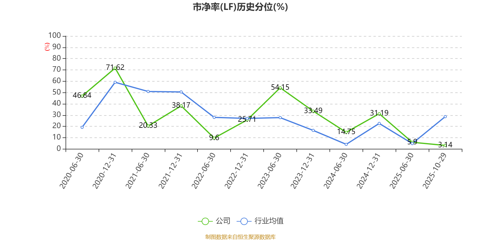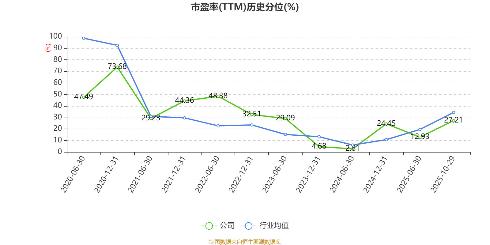 市盈率、市净率为负时,不显示当期分位数,会导致折线图中断。