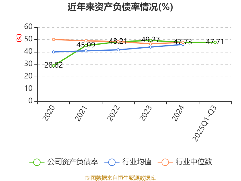 资产重大变化方面,截至2025年三季度末,公司货币资金较上年末增加12.03%,占公司总资产比重上升0.71个百分点;交易性金融资产合计较上年末减少45.01%,占公司总资产比重下降0.62个百分点;应收票据及应收账款较上年末增加44.18%,占公司总资产比重上升0.59个百分点;固定资产较上年末增加2.57%,占公司总资产比重上升0.42个百分点。