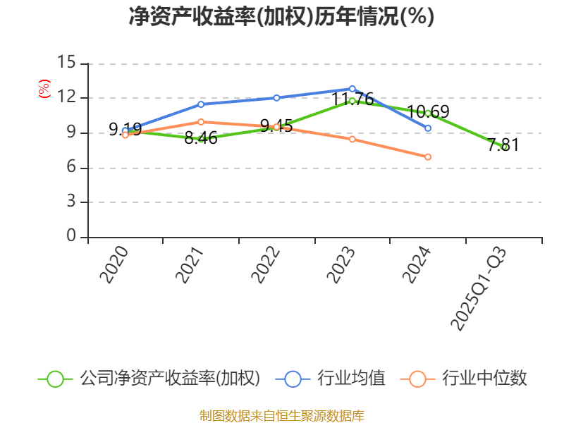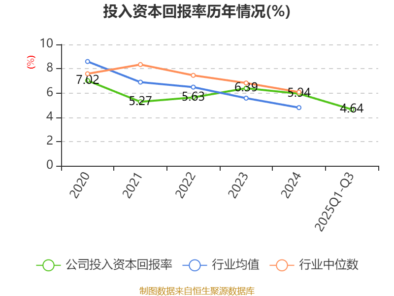 盈利能力方面, 2025年前三季度公司加权平均净资产收益率为7.81%,同比下降1.21个百分点。公司2025年前三季度投入资本回报率为4.64%,较上年同期下降0.43个百分点。