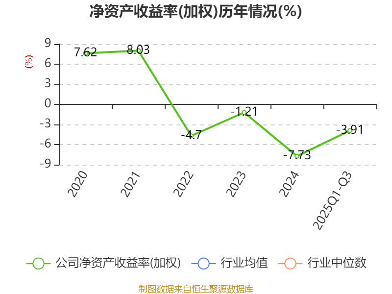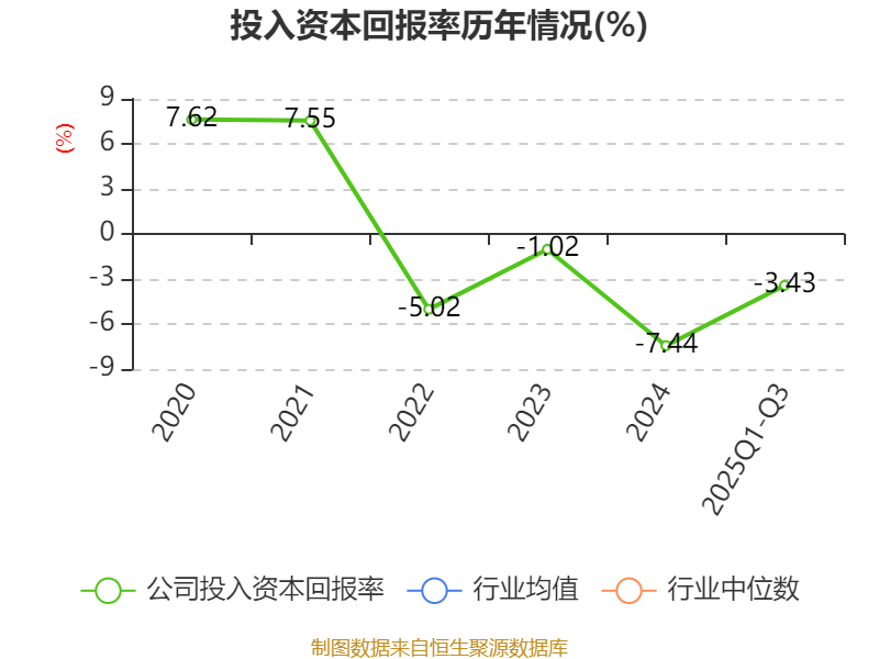 盈利能力方面, 2025年前三季度公司加权平均净资产收益率为-3.91%,同比下降4.09个百分点。公司2025年前三季度投入资本回报率为-3.43%,较上年同期下降3.62个百分点。