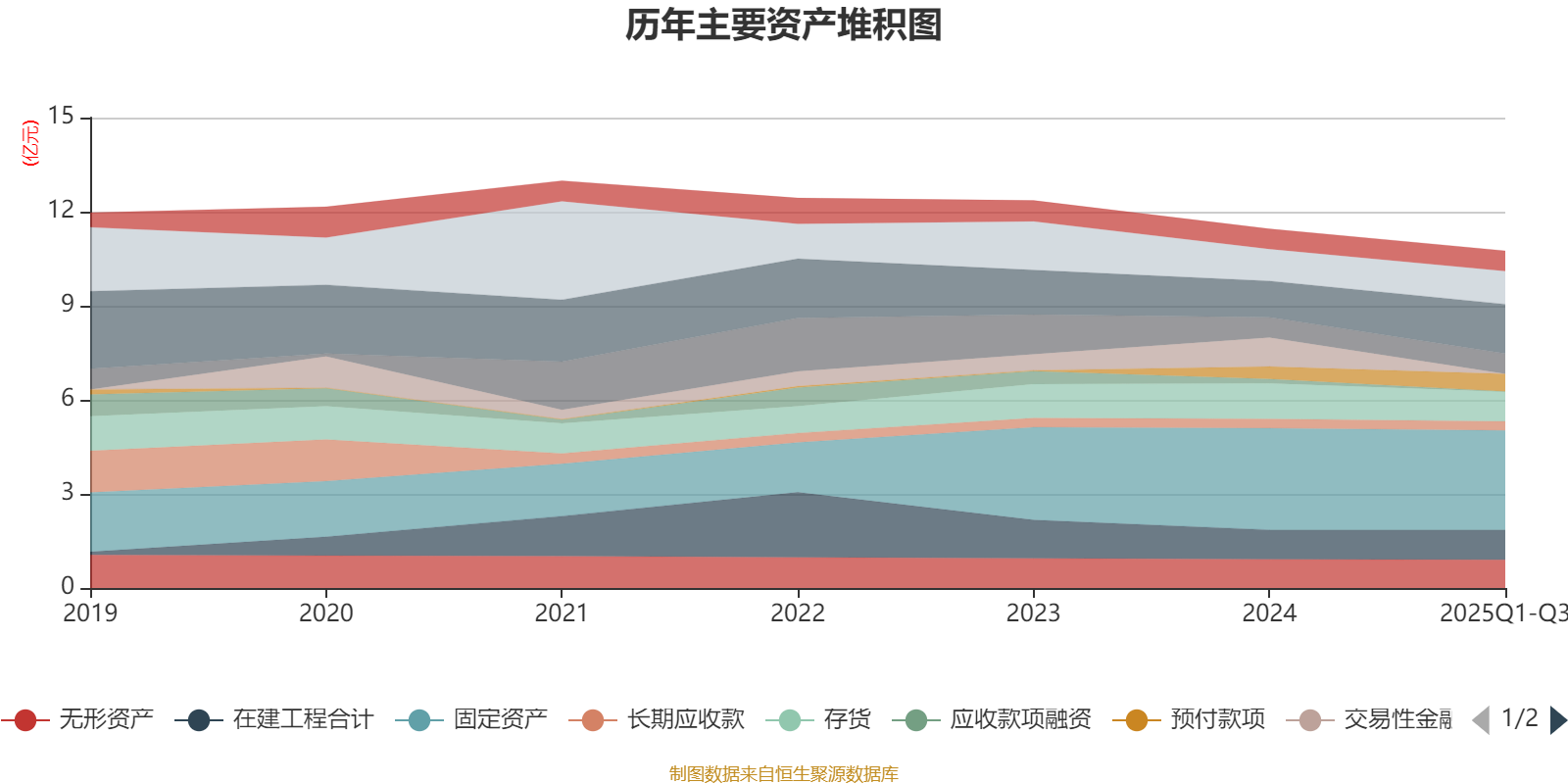 资产重大变化方面,截至2025年三季度末,公司交易性金融资产合计较上年末减少100%,占公司总资产比重下降8.11个百分点;应收票据及应收账款较上年末增加36%,占公司总资产比重上升4.53个百分点;预付款项较上年末增加41.32%,占公司总资产比重上升1.76个百分点;应收款项融资较上年末减少98.52%,占公司总资产比重下降1.19个百分点。