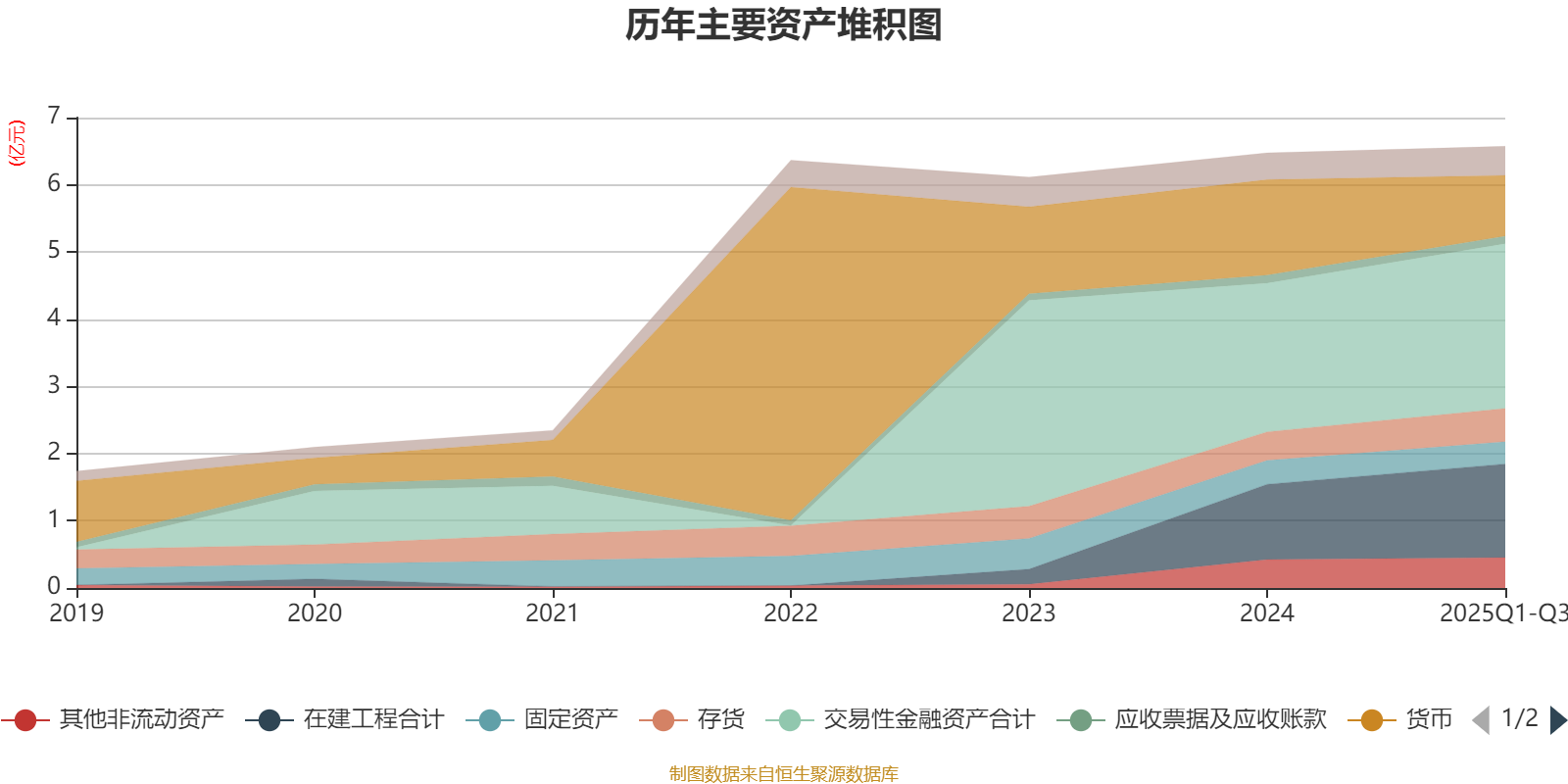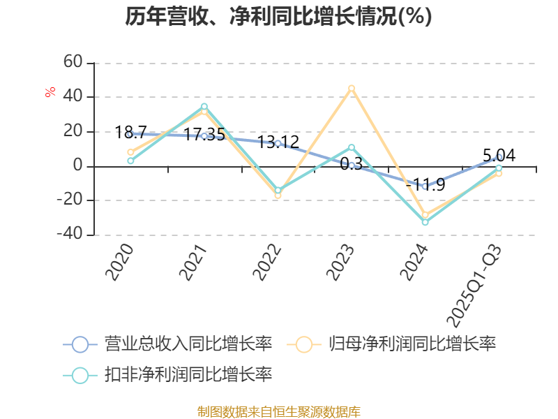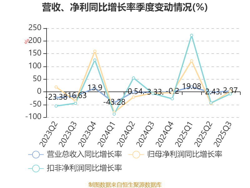 资产重大变化方面,截至2025年三季度末,公司货币资金较上年末减少36.55%,占公司总资产比重下降8.23个百分点;在建工程合计较上年末增加24.49%,占公司总资产比重上升3.92个百分点;交易性金融资产合计较上年末增加10.71%,占公司总资产比重上升3.1个百分点;存货较上年末增加16.71%,占公司总资产比重上升0.98个百分点。