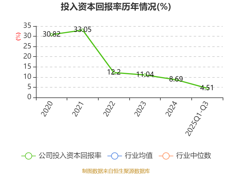 盈利能力方面, 2025年前三季度公司加权平均净资产收益率为3.82%,同比下降0.26个百分点。公司2025年前三季度投入资本回报率为4.51%,较上年同期上升0.45个百分点。