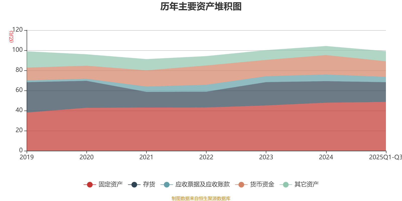 资产重大变化方面,截至2025年三季度末,公司固定资产较上年末增加1.59%,占公司总资产比重上升3.16个百分点;货币资金较上年末减少19.63%,占公司总资产比重下降2.86个百分点;应收票据及应收账款较上年末减少20.63%,占公司总资产比重下降1.06个百分点;预付款项较上年末增加63.62%,占公司总资产比重上升1.02个百分点。