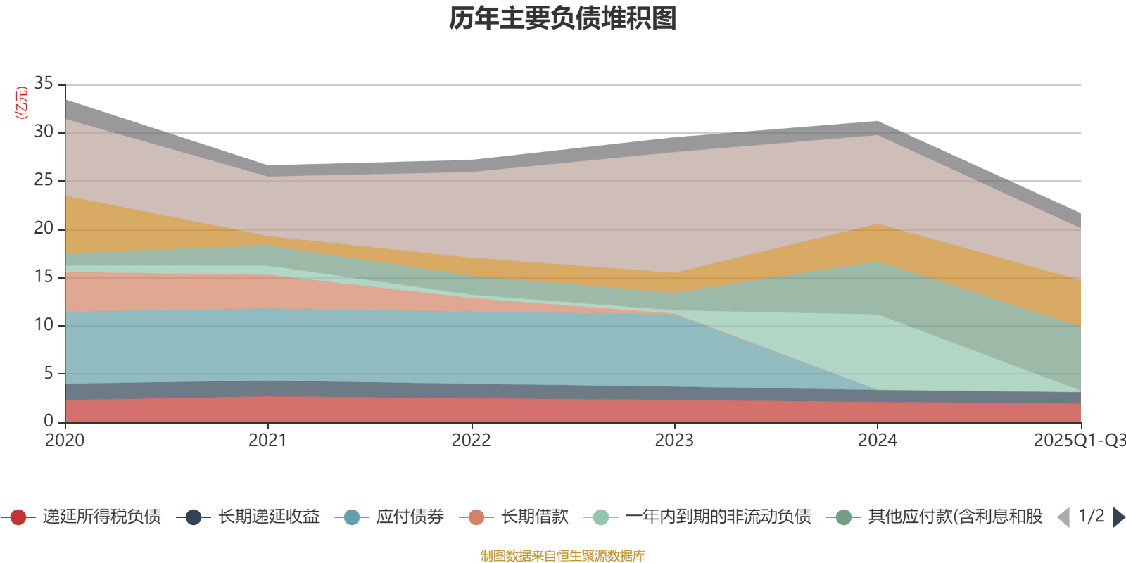 负债重大变化方面,截至2025年三季度末,公司一年内到期的非流动负债较上年末减少98.08%,占公司总资产比重下降7.36个百分点;应付票据及应付账款较上年末减少41.38%,占公司总资产比重下降3.38个百分点;其他应付款(含利息和股利)较上年末增加20.16%,占公司总资产比重上升1.4个百分点;合同负债较上年末增加24.14%,占公司总资产比重上升1.14个百分点。