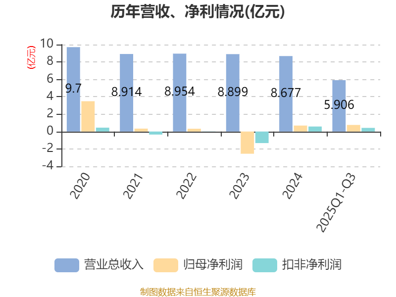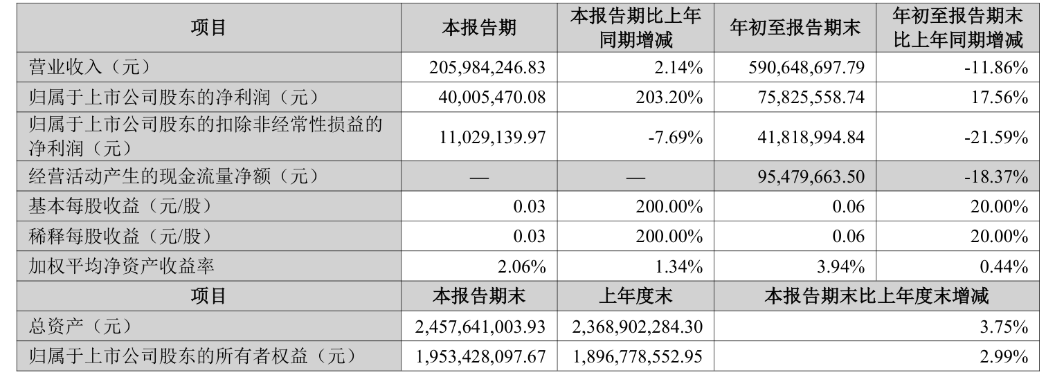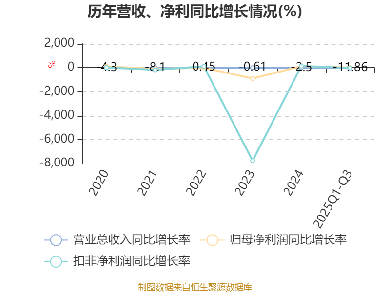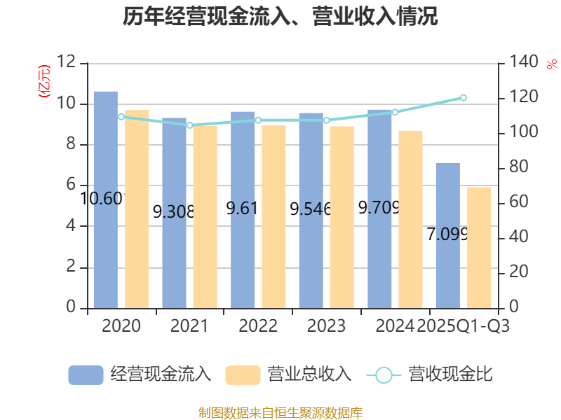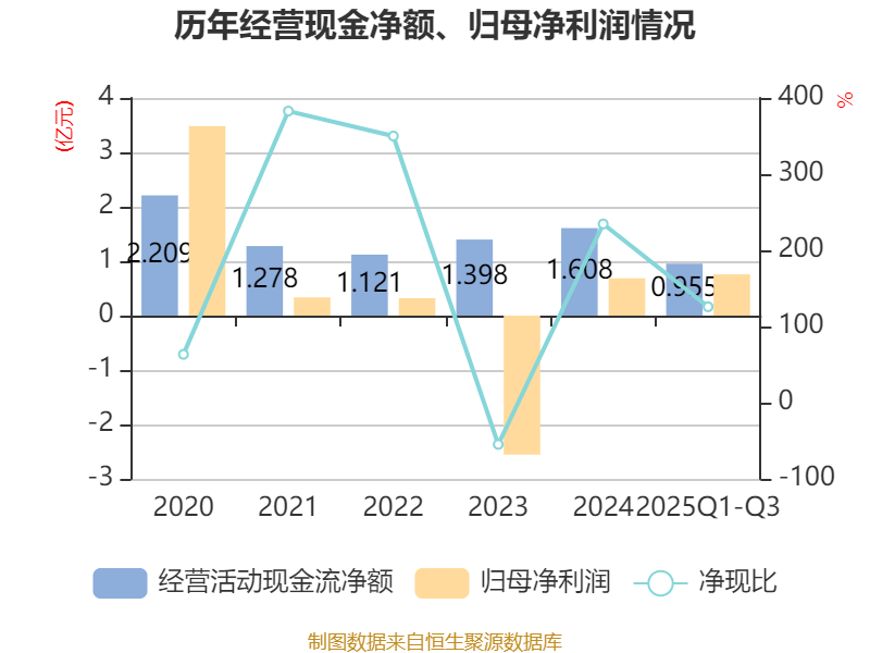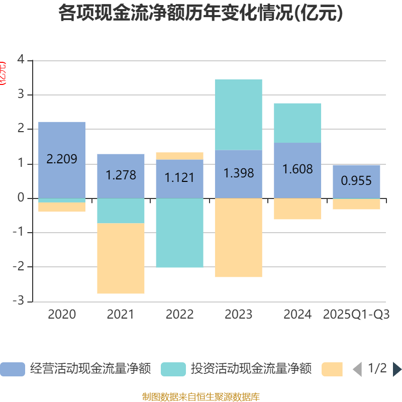 2025年前三季度,公司经营活动现金流净额为9547.97万元,同比下降18.37%;筹资活动现金流净额-2980.91万元,同比增加2728.86万元;投资活动现金流净额-246.05万元,上年同期为1.68亿元。