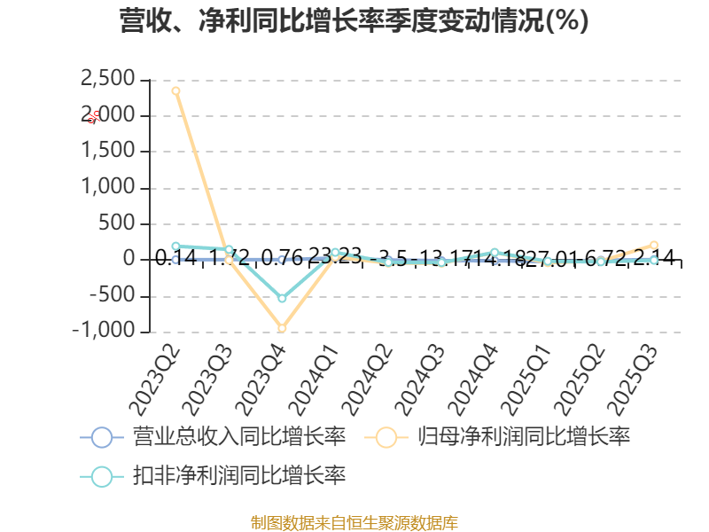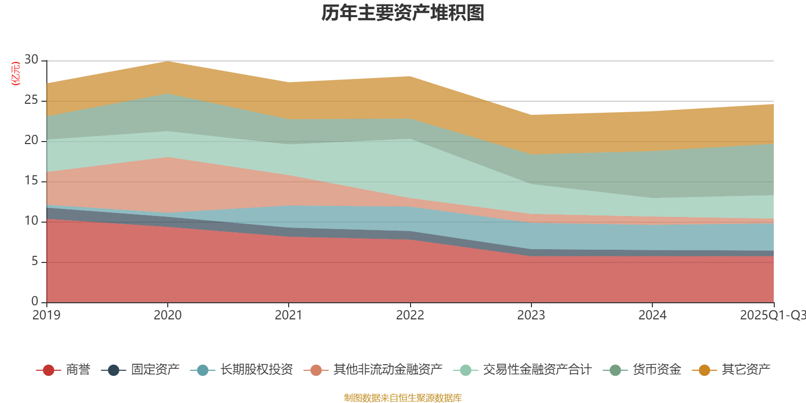资产重大变化方面,截至2025年三季度末,公司其他非流动资产较上年末减少63.81%,占公司总资产比重下降2.53个百分点;交易性金融资产合计较上年末增加25.9%,占公司总资产比重上升2.08个百分点;其他非流动金融资产较上年末减少43.11%,占公司总资产比重下降1.98个百分点;货币资金较上年末增加9.42%,占公司总资产比重上升1.34个百分点。