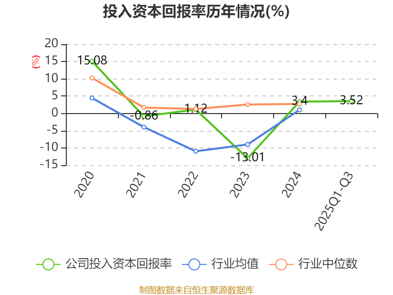 盈利能力方面, 2025年前三季度公司加权平均净资产收益率为3.94%,同比上升0.44个百分点。公司2025年前三季度投入资本回报率为3.52%,较上年同期上升0.26个百分点。