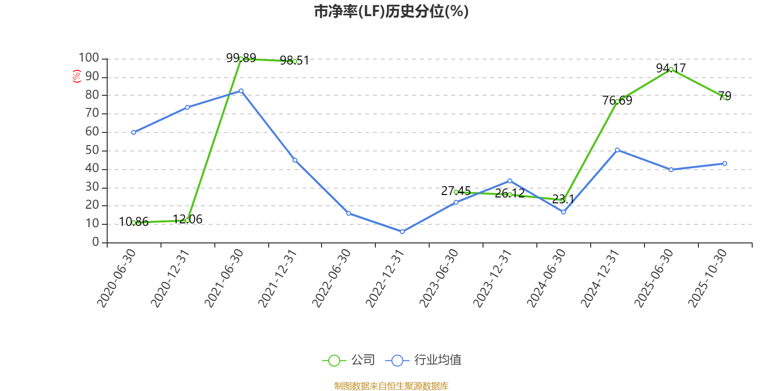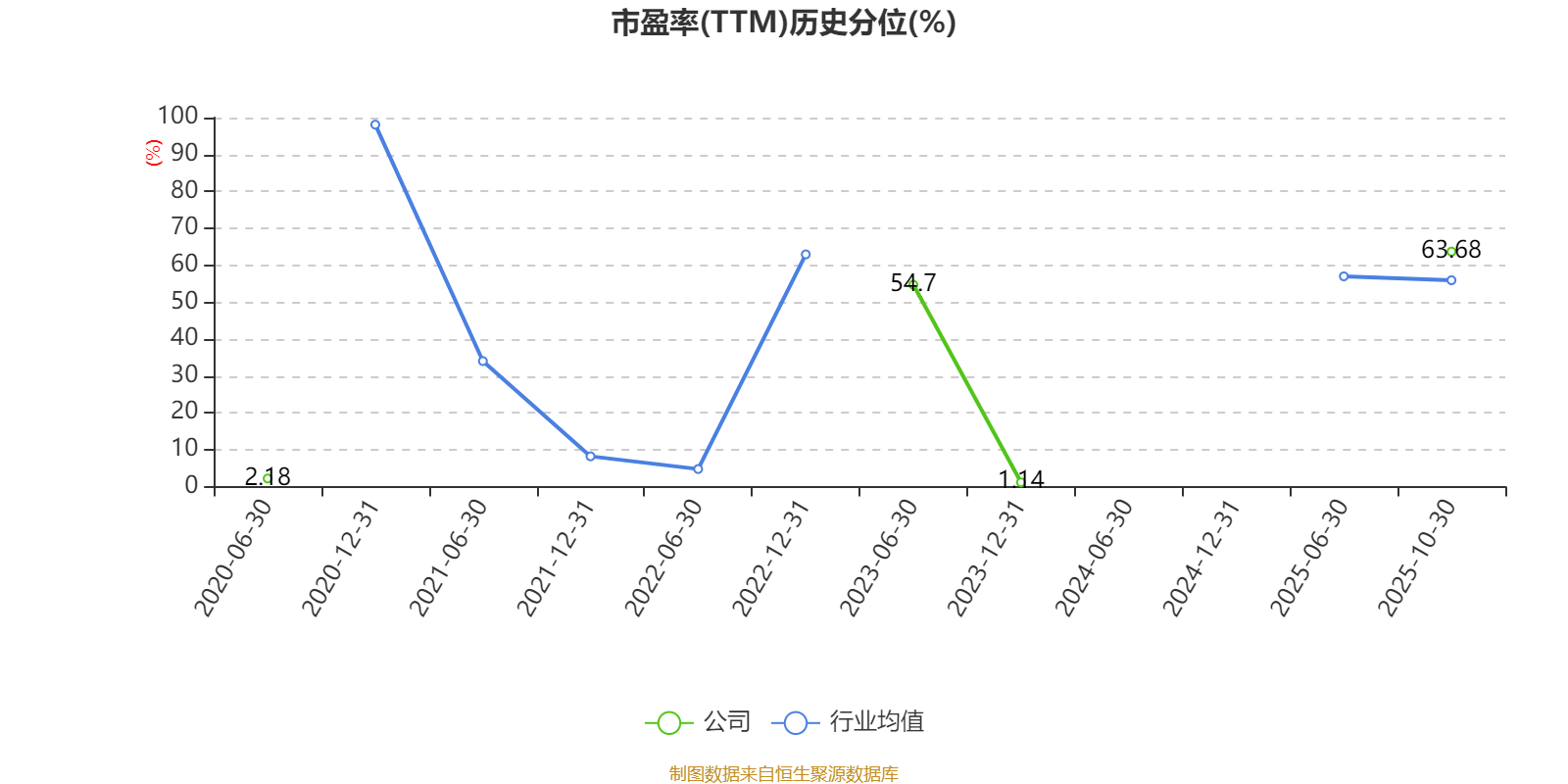市盈率、市净率为负时,不显示当期分位数,会导致折线图中断。