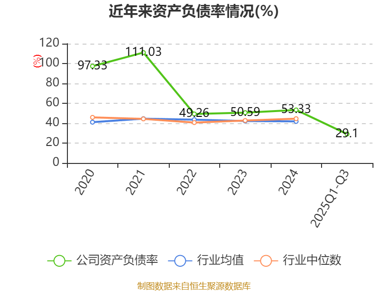 资产重大变化方面,截至2025年三季度末,公司固定资产较上年末减少30.1%,占公司总资产比重下降8.86个百分点;应收票据及应收账款较上年末增加29.31%,占公司总资产比重上升5.37个百分点;其他非流动资产较上年末增加936.73%,占公司总资产比重上升3.15个百分点;货币资金较上年末增加15.55%,占公司总资产比重上升2.2个百分点。