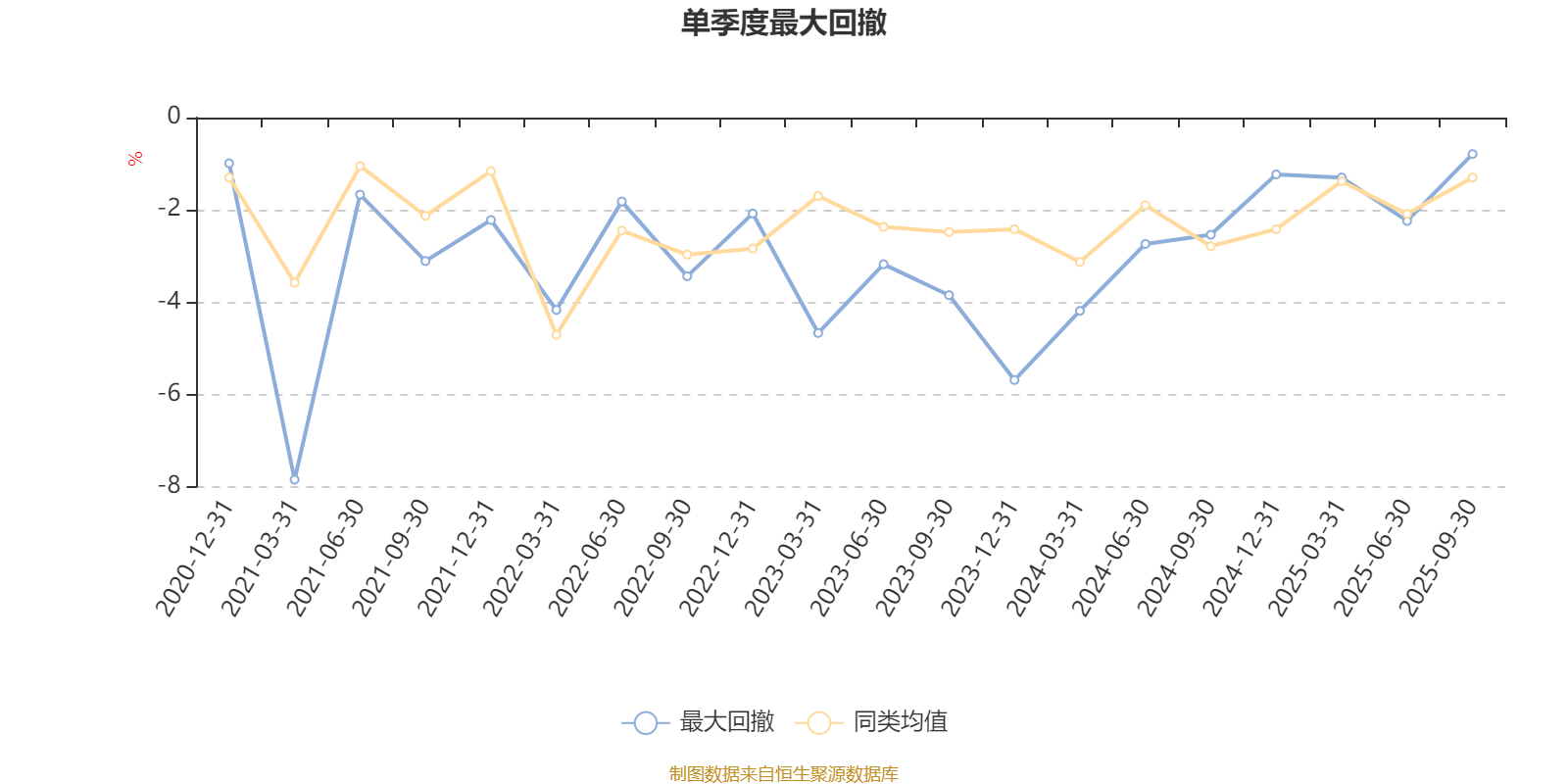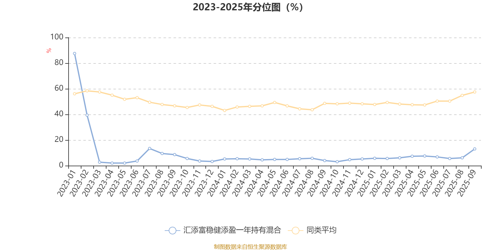 通过所选区间该基金净值增长率分位图,可以观察该基金与同类基金业绩比较情况。图为坐标原点到区间内某时点的净值增长率在同类基金中的分位数。
