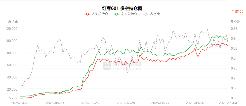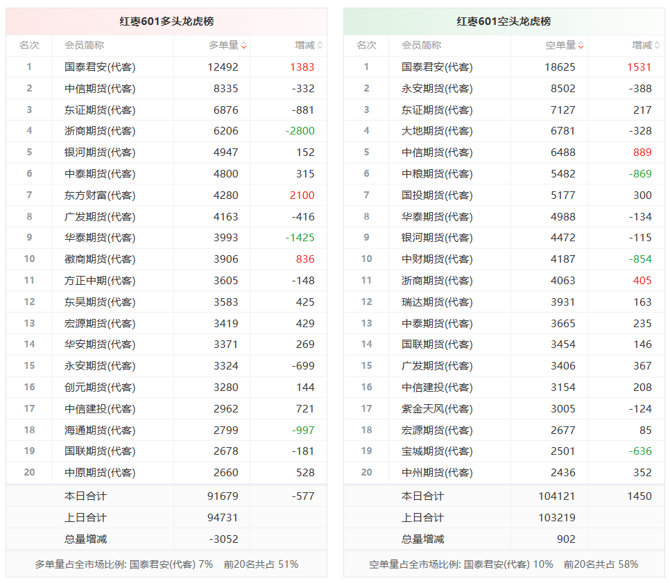 红枣龙虎榜 | 主力合约增仓下行 多方呈退场态势 空方呈进场态势