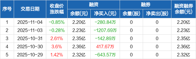 永杉锂业融资融券信息显示,2025年11月4日融资净偿还280.84万元;融资余额2.2亿元,较前一日下降1.26%