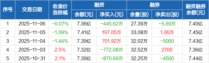 浙数文化融资融券信息显示,2025年11月6日融资净偿还445.62万元;融资余额7.36亿元,较前一日下降0.6%。