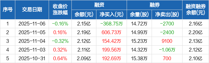 新五丰融资融券信息显示,2025年11月6日融资净偿还368.75万元;融资余额2.15亿元,较前一日下降1.69%。