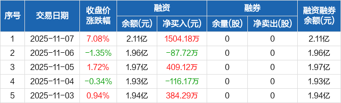 英诺特融资融券信息显示,2025年11月7日融资净买入1504.18万元;融资余额2.11亿元,较前一日增加7.66%