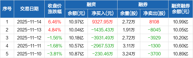 华丰科技融资融券信息显示,2025年11月14日融资净买入9327.95万元;融资余额10.97亿元,较前一日增加9.29%。
