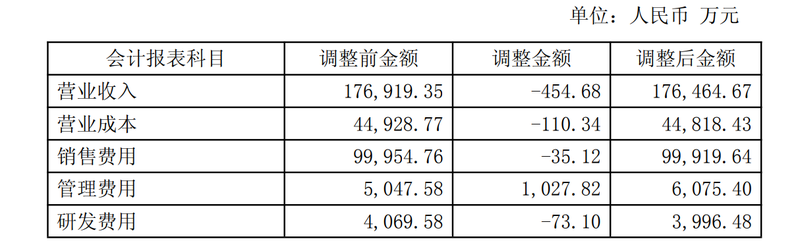 数据显示,今年上半年,丸美生物调整后的营业收入为17.65亿元,较调整前减少了454.68万元;调整后的归母净利润为1.74亿元,较调整前减少了1132.97万元。“本次对前期会计差错更正,对公司营业收入、资产总额、负债总额、净资产、净利润、现金流不构成重大影响,且不存在利用该等事项调节各期利润误导投资者以及损害公司及全体股东利益的情形”,丸美生物表示,后续将认真学习政策法规并加强落实,进一步夯实财务信息质量。